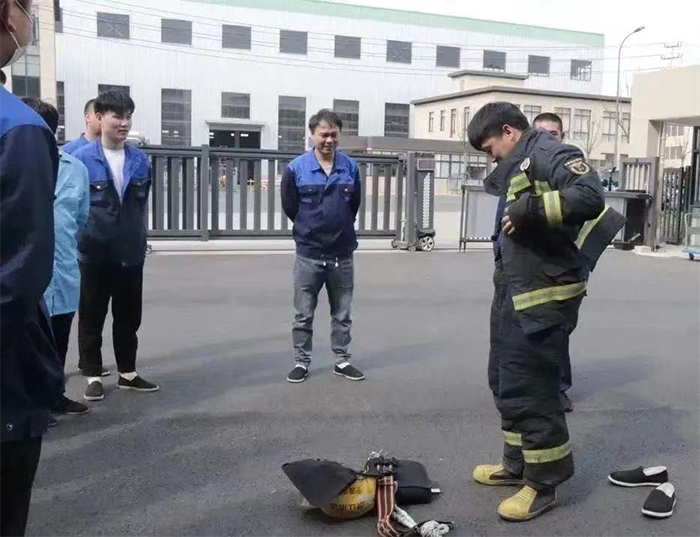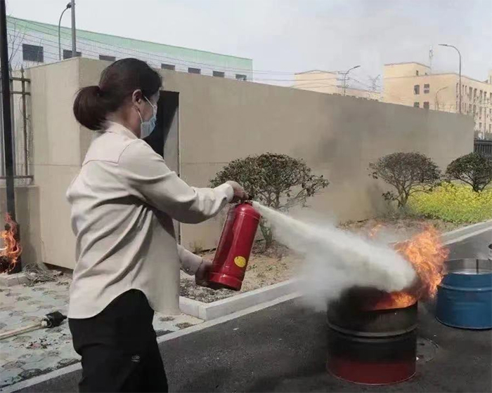 最后,由消防站工作人员对员工进行了灭火器使用的培训。培训中告知员工如何正确使用灭火器,让员工更深入掌握高效、正确的灭火方法。